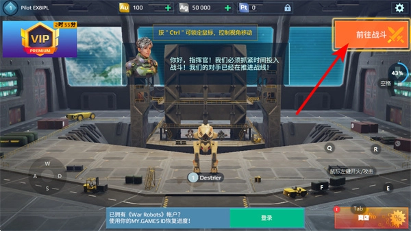 1、在准备界面点击“前往战斗”按钮,这是进入机甲对战的关键步骤,点击后将开启战场场景,解锁机甲战斗的核心体验。