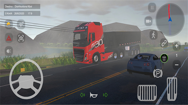 1、游戏支持不同视角的切换,左侧用于操控卡车方向,右侧则负责刹车与油门的控制。