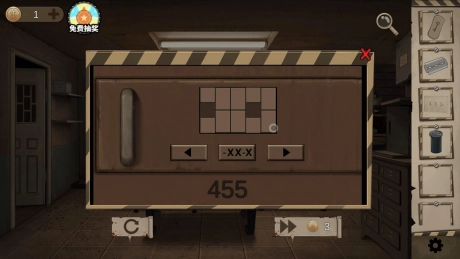 去一楼工作室找到385号箱子并安装按钮,开柜门的方法之前已经讲过了,只是385号箱子的图形和455号的正好相反,这里就不再重复说明了。