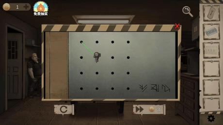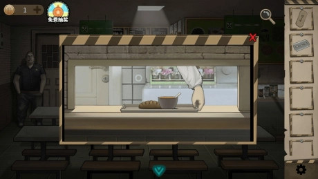 1.与对面的狱友交谈后,得知他给我留下了一些东西。点击中央的窗户,把餐券拼好,只要位置摆放正确,餐券就会固定住不再移动。
