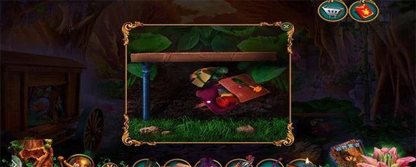 按照提示开启下方的砖块,获取风车轮与破损的机械鸟;在左侧用罐子收集萤火虫,回到之前的场景将萤火虫放入画中,即可得到音乐劵。