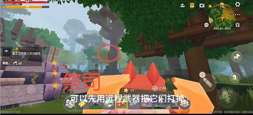 2、只要沿着图标指引的方向前进就能找到祭坛,祭坛周边的天空中经常有祭司来回飞舞,建议先用远程武器将它们清除掉。