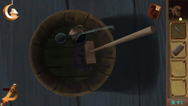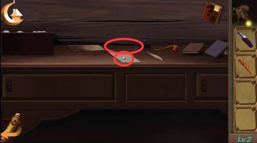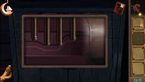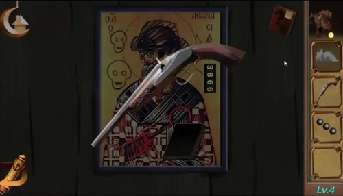 点击柜子,依据柜子上孔洞的提示,用针点击调整锁的机关,解锁后获取火枪。