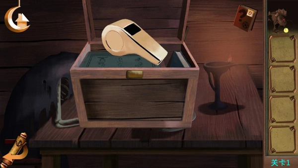 点击桌上的盒子,输入密码V、I、VII,打开后就能获得哨子。