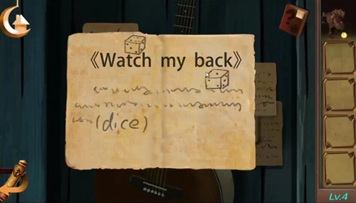 根据吉他背后乐谱提示,点击桌上的骰子得到提示;