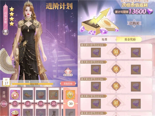 进阶计划。姐妹们解锁逆袭之路后会直接开启进阶计划,大概玩两天就能集齐一套4星服装。送的道具都挺实用,点奖励总览就能看到,资质券、大冒险卡、扑克牌和唱片这些价值都比较高。其他道具我都攒着留到后面冲榜用!