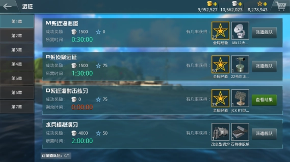 远征系统可以通过派遣战舰来获取银币和战舰经验,可选择的派遣地点会随着战役章节的解锁而逐步开放。每次派遣无需额外操作,只需等待远征时长结束就能领取奖励,过程中还有机会获得配件、全局经验等有助于提升战舰实力的资源哦!获取各类资源就是如此简单便捷。
