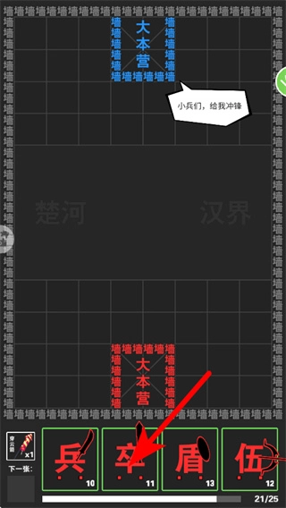 进入游戏后,点击底部的棋子(比如卒),挑选好想要部署的单位,然后就可以准备在棋盘上放置棋子了。