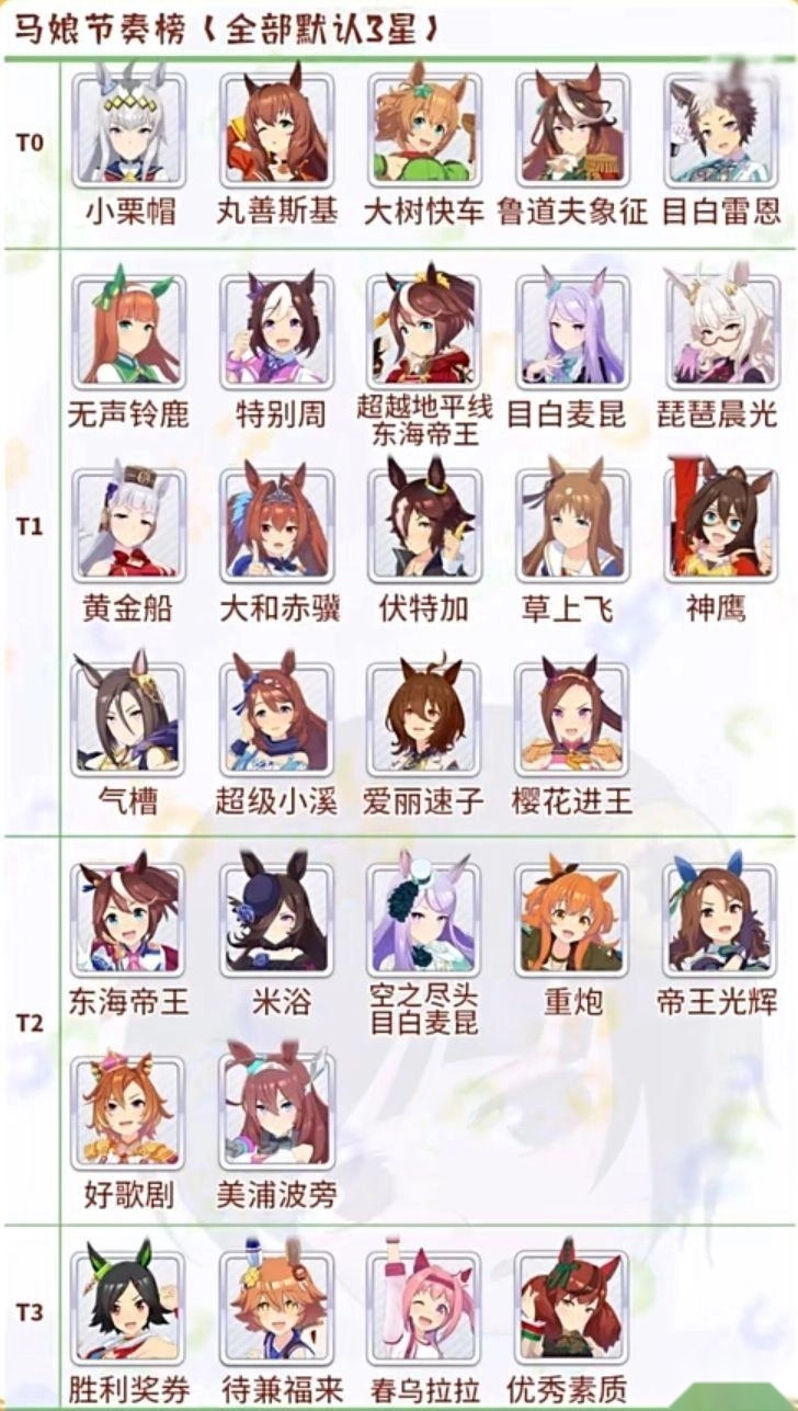 A:开局至少抽到四张SSR才算及格,当然是越多越好,这是个需要注意的点,得花些时间刷个好初始。辅助卡方面,推荐的有:美妙姿势(一定要抽,未来是T0级别的,后续要满破)、骏川手纲(0破就能通用,等级不用升太高)、微光飞驹(速度型卡片)、超级溪流(耐力型卡片)。有了这些,前期基本就没什么问题了。不过也可以选择等一个月后推出的北黑,这是张神卡,可能因为避免数值膨胀的问题,开服时没有上线(之后推出了一定要抽)。