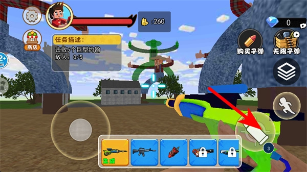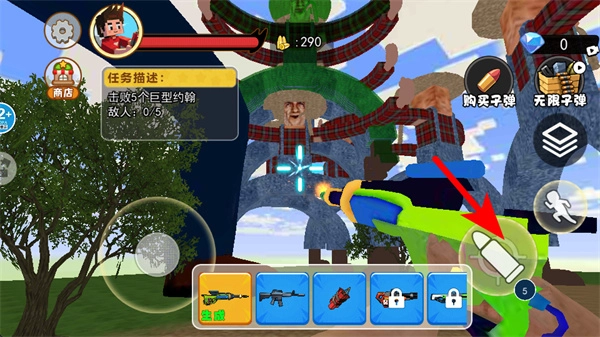 3、点击右侧的子弹图标按钮,运用当前所持武器对敌人发起攻击,通过消耗子弹来逐步减少敌人的血量。