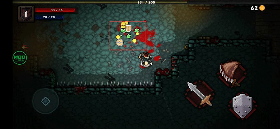 3、战胜敌人后,金币和装备会自动拾取(靠近掉落物品就行)。