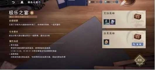 极乐之宴是分舵活动里的一项福利活动,奖励相当丰厚,玩法也比较简单,完成任务不仅能获取大量参悟香和铜钱,还可以为分舵筹集到不少分舵资金。