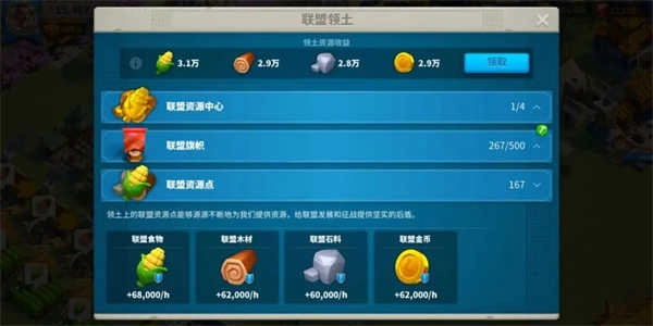 联盟获取资金的途径有两种,一是联盟成员在联盟领土范围内进行采集时,可获得对应的联盟资金;二是联盟资源点,该资源点每间隔一小时会产出一次资源。