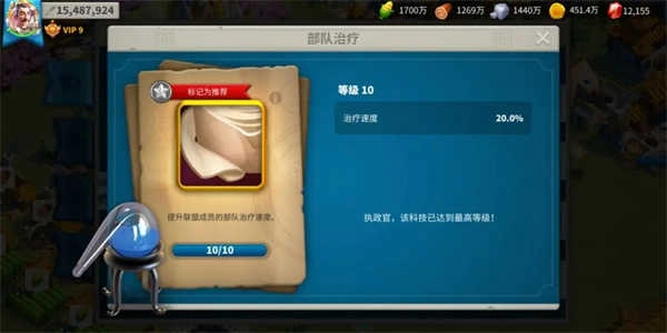 而且,这个技能还能结合游戏机制,达成快速救治伤兵的效果。到了中后期战斗时,我们治疗伤兵通常得花很长时间,还得用掉不少加速道具。要是采用分批治疗的方式,就能更快让伤员恢复,比如我们伤了很多兵,原本需要一天才能治疗完毕,但要是分批次来,每次只治疗一小时能处理完的兵量,再加上联盟成员的协助,就能实现秒治疗的效果。