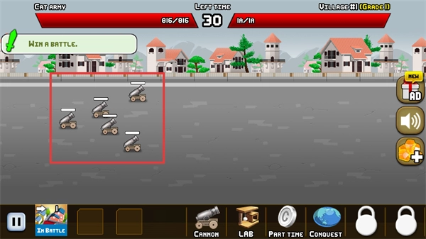 3、战斗时合理布局【Cannon】炮台,借助村庄地形优势,持续攻击敌方目标推进战局。