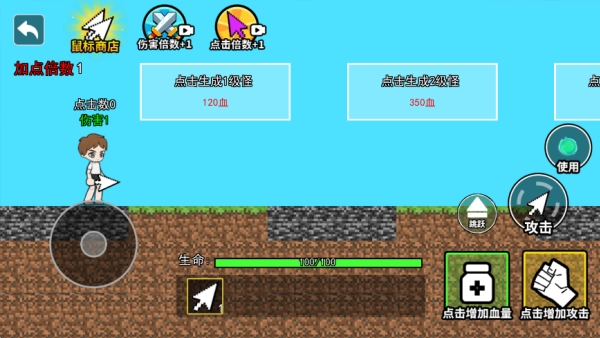 2、从第一关起,你的伤害值仅为1点,点击上方视频即可解锁伤害倍数加成。