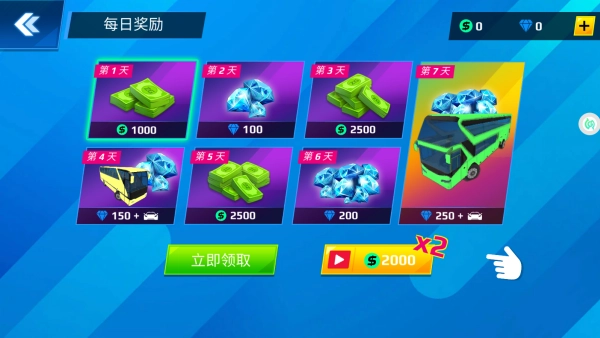 2、每日完成签到任务即可获取丰厚奖励,其中涵盖游戏金币、钻石,更有机会赢取全新车辆。