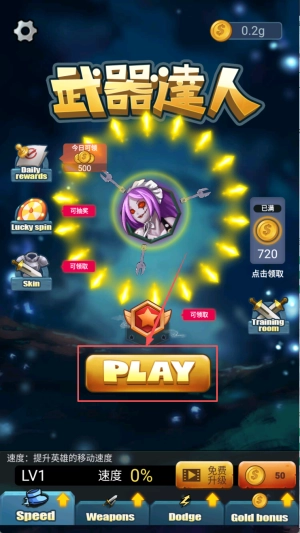 1、开始游戏:点击“PLAY”按钮,进入游戏。
