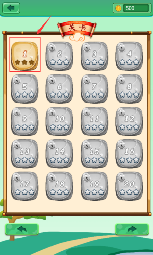 2、选择第一关卡,进入已获得三星的完成关卡。