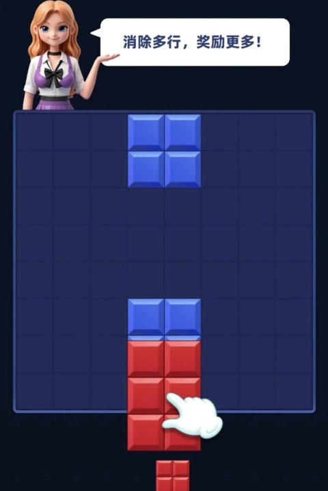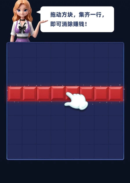 2、游戏中不管是横着的一行,还是竖着的一列,只要你能把一行或一列的空格子都填满方块,这一行(或列)就会消失,同时你就能赚到收益。