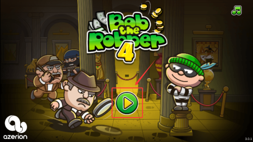 2、点击红框箭头指向的绿色播放按钮,开始鲍勃神偷4游戏。