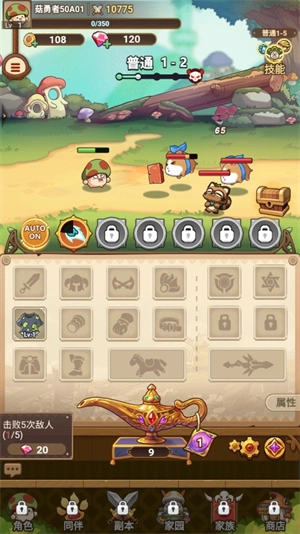 4、游戏里玩家无需执行攻击操作,蘑菇会自动发起攻击,大家只需按照左下角的任务提示来进行就可以了。