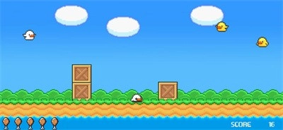 《鸭鸭启示录》是一款充满趣味的像素风射击游戏,玩家需要瞄准并击落那些在蓝天中飞行的鸭鸭。简单有趣的玩法很容易上手,现在就开启这场欢乐的冒险,在游戏里自由挑战属于自己的关卡吧。努力获取更高分数,尽情享受这款游戏带来的乐趣!