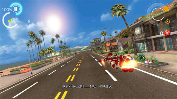 5、完成相关设置后,进入游戏,就能看到钢铁侠正一边飞行,一边接受任务。