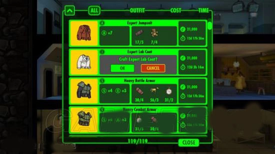 在第6步的这个状态下,我们点击服装工坊状态栏里的“CRAFT”按钮,就能制作出我们想要的高级装备了(此时我们无需在意制造这些服装所花费的时间长短)。