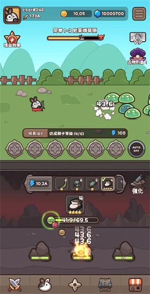 《胡萝卜大作战》手机版是一款放置挂机类的冒险战斗游戏,整体画风卡通萌趣。玩家将操控可爱的战斗兔灵活走位,在广阔的世界大陆上开启探险与生存之旅——你可以自由带领不同职业的兔子进行训练,让它们学习强大流畅的格斗连招与炫酷的战斗特效;战斗时需灵活调整策略战术,释放绚丽大招将敌军BOSS全部消灭。感兴趣的玩家可别错过啦!