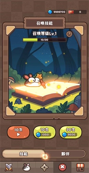 5、点击宝箱按钮可消耗钻石抽取技能与伙伴,每次抽取所获的技能和伙伴均为随机。