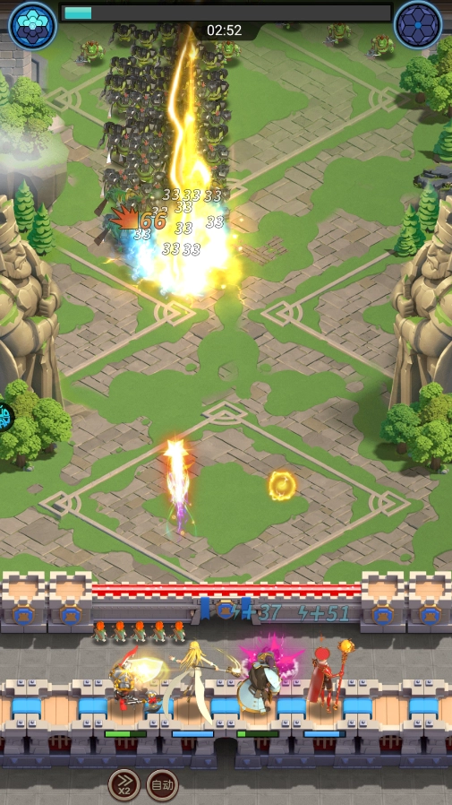 1、游戏采用竖版塔防玩法,玩家无需建造防御塔,战力提升主要依靠升级技能来实现。
