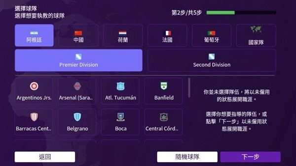 2、游戏开始前需要选择你的可玩国家和执教球队。