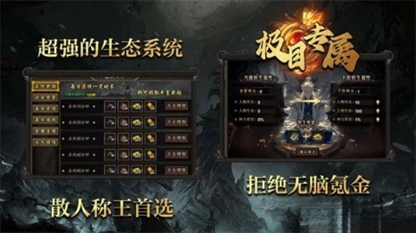 2. 游戏里的所有货币和材料都能靠打怪获取,轻松爆出上千件红品神装不再是空想,零氪金的玩家也能拥有很棒的游戏体验。