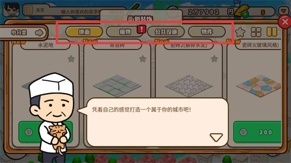 2、打开街道装饰可以看到对应的装饰并进行布置;