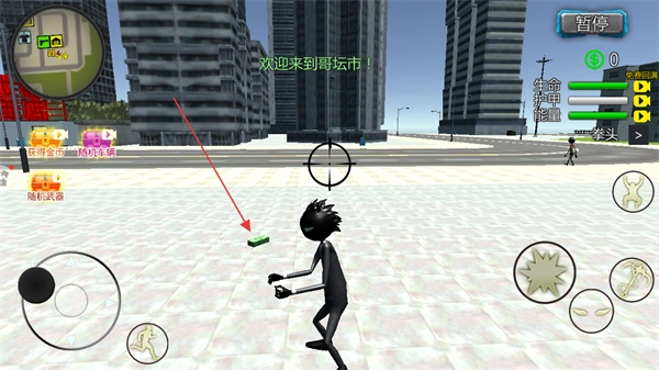 1、通过操控移动键靠近绿色道具,拾取后可获取资源,以此在哥坛市场景中推进流程。