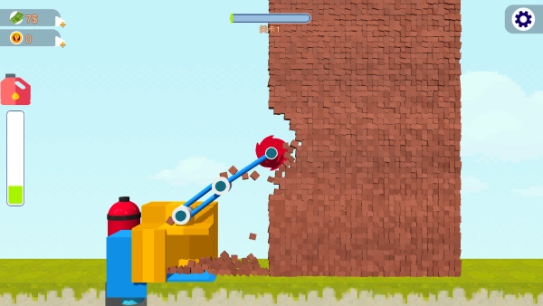 2.资源管理:成功拆除墙体后会掉落砖块类材料,这些材料可在商店中兑换为金币。金币是用于升级齿轮动力、强度与耐久度的唯一货币,因此需要对其进行合理规划与使用。