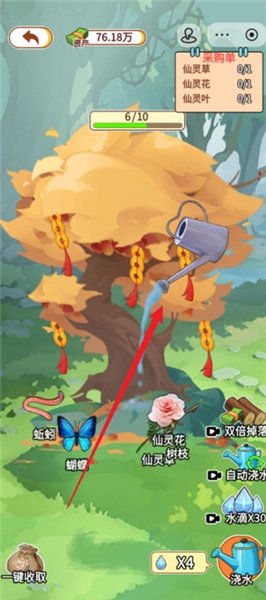 4.可通过“”功能加速浇树赚钱的收益获取。