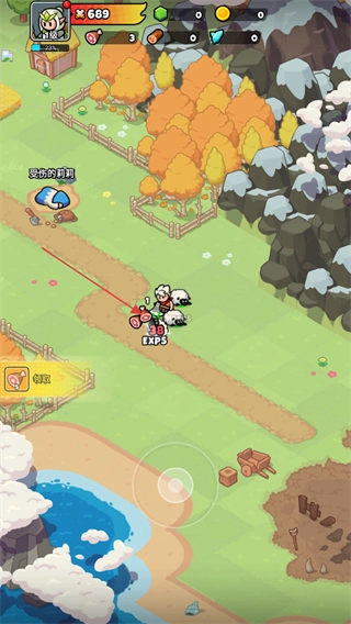 3、战胜绵羊后可以得到EXP和资源奖励,之后移动到受伤的莉莉所在的地方,还能点击左边的领取按钮来获取相应道具,以此推动游戏进程。