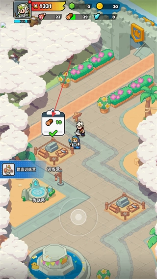 4、在当前场景下,点击带有木材图标的确认框来完成资源确认,随后就能按照提示继续推进训练营的建造流程。