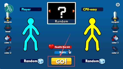 2、选择角色:点击“Random”或“GO!”按钮来选定角色并启动游戏。