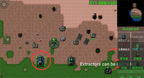 我们目前手头的资金少得可怜,这可怎么办才好?办法很简单——找一处漆黑的大坑,让建造车在上面搭建“资金提取器”,这样资金就能源源不断地涌入了。这个装置还能升级,建议在初期就进行升级操作。