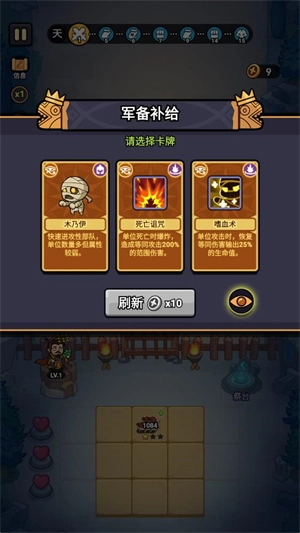 进入关卡后,玩家需要挑选初始兵种进行上阵操作,只需把对应的卡牌放置到指定的方块中,即可完成该兵种的上阵。