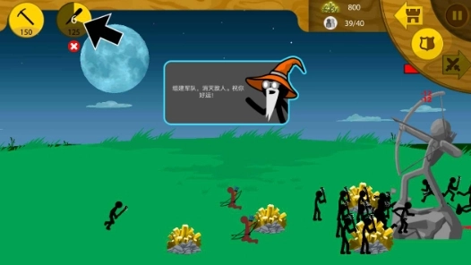 1、收集具备不同特性的火柴人,组建专属战斗队伍,通过开采黄金积累资源,或是主动发起战争来争夺更多领土;