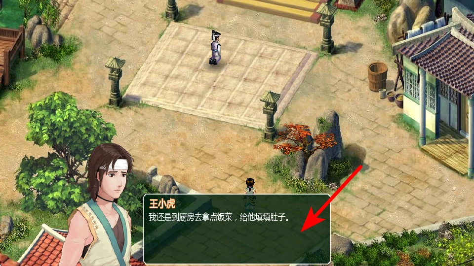 3、按照王小虎对话里的提示,去厨房取饭菜,跟着剧情的指引完成相应操作,就能推动任务进展,开启后续的内容。