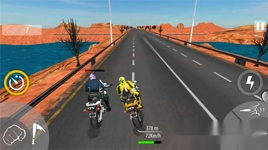 1. 融合竞速与格斗元素,驾驶摩托并利用武器与对手展开对抗,感受别具一格的战斗竞速乐趣。