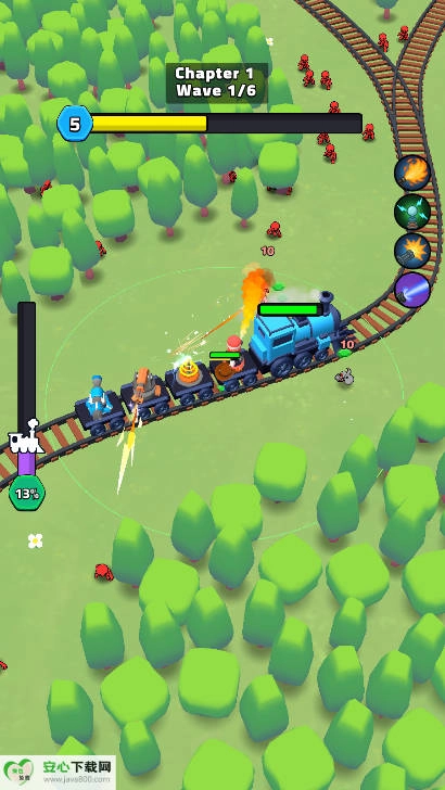 丰富成长,多元定制:玩家通过击败敌人获取经验升级后,可从种类繁多的武器与升级装备中自由挑选,打造专属于自己的移动堡垒。各类武器拥有独特的攻击模式与伤害效果,升级装备能够增强列车性能、提高武器威力,多样的成长方向使玩家可以依据自身游戏风格和战斗需求,构建独一无二的防御体系。