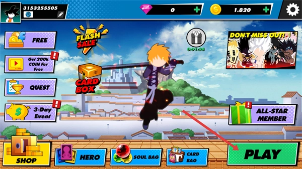 1、在主界面找到并点击【PLAY】按钮,即可进入战斗关卡开启匹配对战流程。