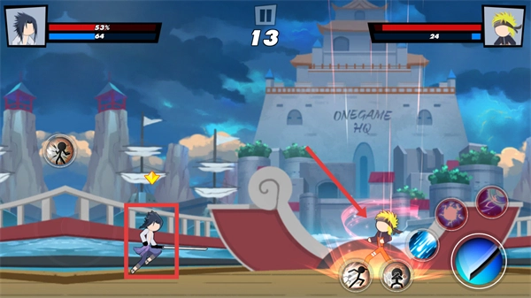 2、战斗过程中操控角色移动走位,点击右侧的【技能按钮】来攻击敌方角色,以此积累连击数。