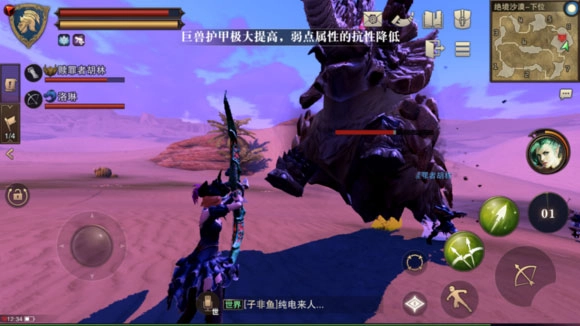 战斗前的准备工作里,观察是最关键的一环,好比打仗前要先侦查,得摸清巨兽的特性、技能和攻击方式,这些信息都能帮你打赢。比如荒漠猛犸,只要跟它交手一次,就能摸清它的技能——它最核心的是个防御技能,能减免伤害、强化身体部位,不过这技能会让你每次攻击只能造成少量伤害,有点烦人,但只要等它持续时间过了就行,这点没什么难度。